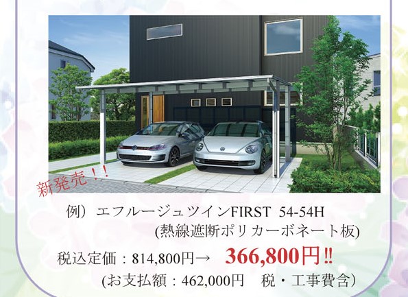 屋根材を熱線遮断ポリカにすれば、屋根下温度が涼しくなり、暑い夏の車に乗り込んだ時の激熱さが緩和されますよ。