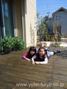 こんな暖かい日は、自然木のデッキがほどよく温もり、まるで、床暖房のような心地よさ。