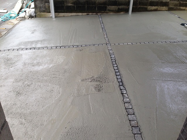 今回は目地部分には伸縮目地ではなくデザイン性もあるピンコロラインにしております!