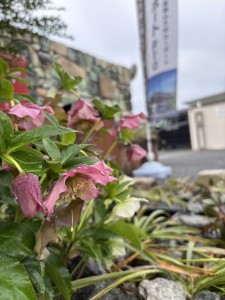 雨上がりでしっとりと濡れたクリスマスローズ。