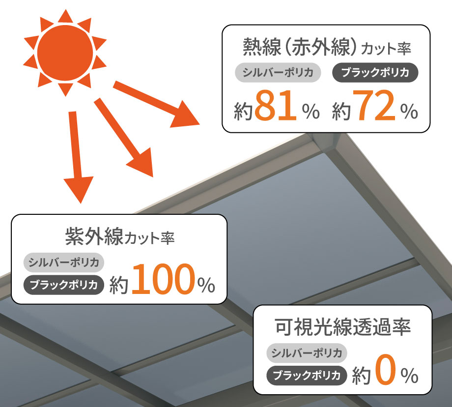 デザイン性の高い天井材付きカーポートや、アルミ屋根のカーポートより安価に遮熱効果・遮光効果・高級感を演出したい方におすすめの屋根材です。