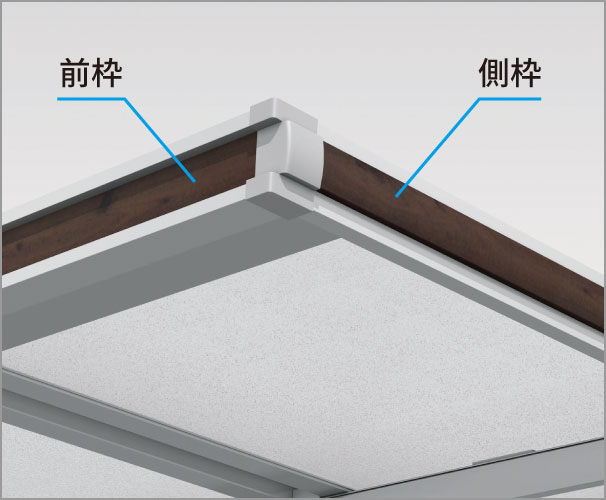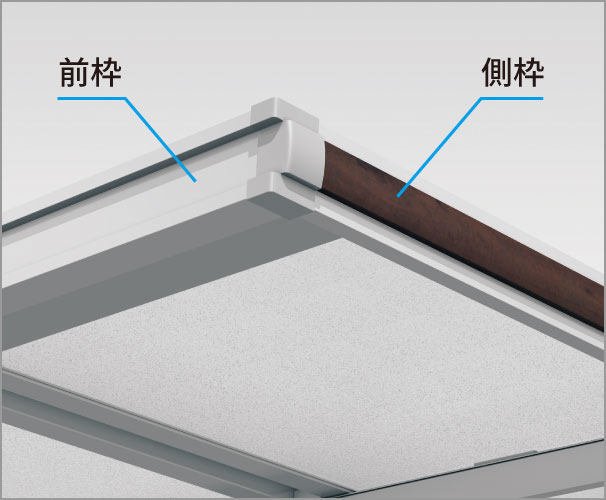 基本のサンシルバー・アーバングレー・ブラックの形材色の他、屋根の前枠や側枠に木調のアクセントをプラスすることが可能。