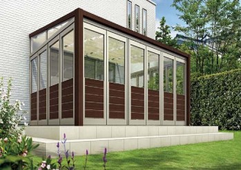 住宅スタイル・ライフスタイルに合わせた豊富な品揃えのYKKapソラリア 木調ガーデンルームタイプはよりナチュラルな雰囲気のテラス空間を演出します
