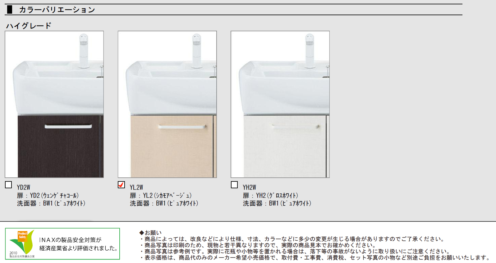 扉:シカモアベージュ(YL2) 洗面器:ピュアホワイト(BW1)