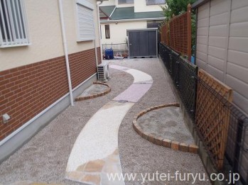 雑草対策をメインにアプローチの舗装と砂利敷き