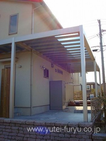 勝手口から庭まですっぽりリレーリアで覆っているので、雨の日もドンと来い!!
