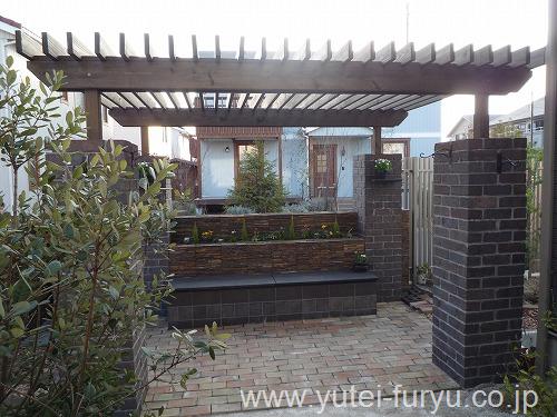 奥様とのお打合せは、毎回美味しいお茶とお菓子とで女子トークのような感じでとても楽しい時間でした!なかなか他にないような異国のようなお庭となり、奥様が思い描いていた重厚感のあるパーゴラが出来上がりました。素材や色選びはサンプルを色々見ながら、やはり本物のレンガ・木の素材・石貼りなどで重厚感を出していきましたね!ダイニングからの眺めは本当に格別になり、ご近所の方も一緒にお茶会が出来るお庭になりました!いつもK様のパーンッと明るい笑い声に元気を頂きました!