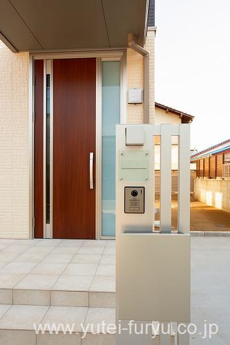 目隠しフェンス エクシスランド:Eウッドスタイル ネオ セピア 玄関ドアと色を合わせて統一感を出しています。