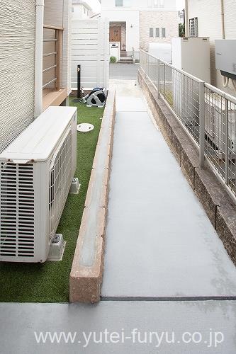 ウッドデッキ横は自転車が通れるように土間コンクリートでスロープ状に