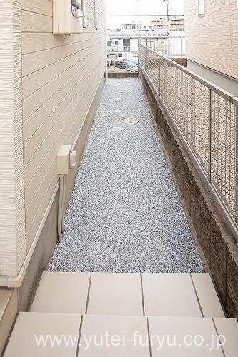家の周囲は白砕石で雑草対策